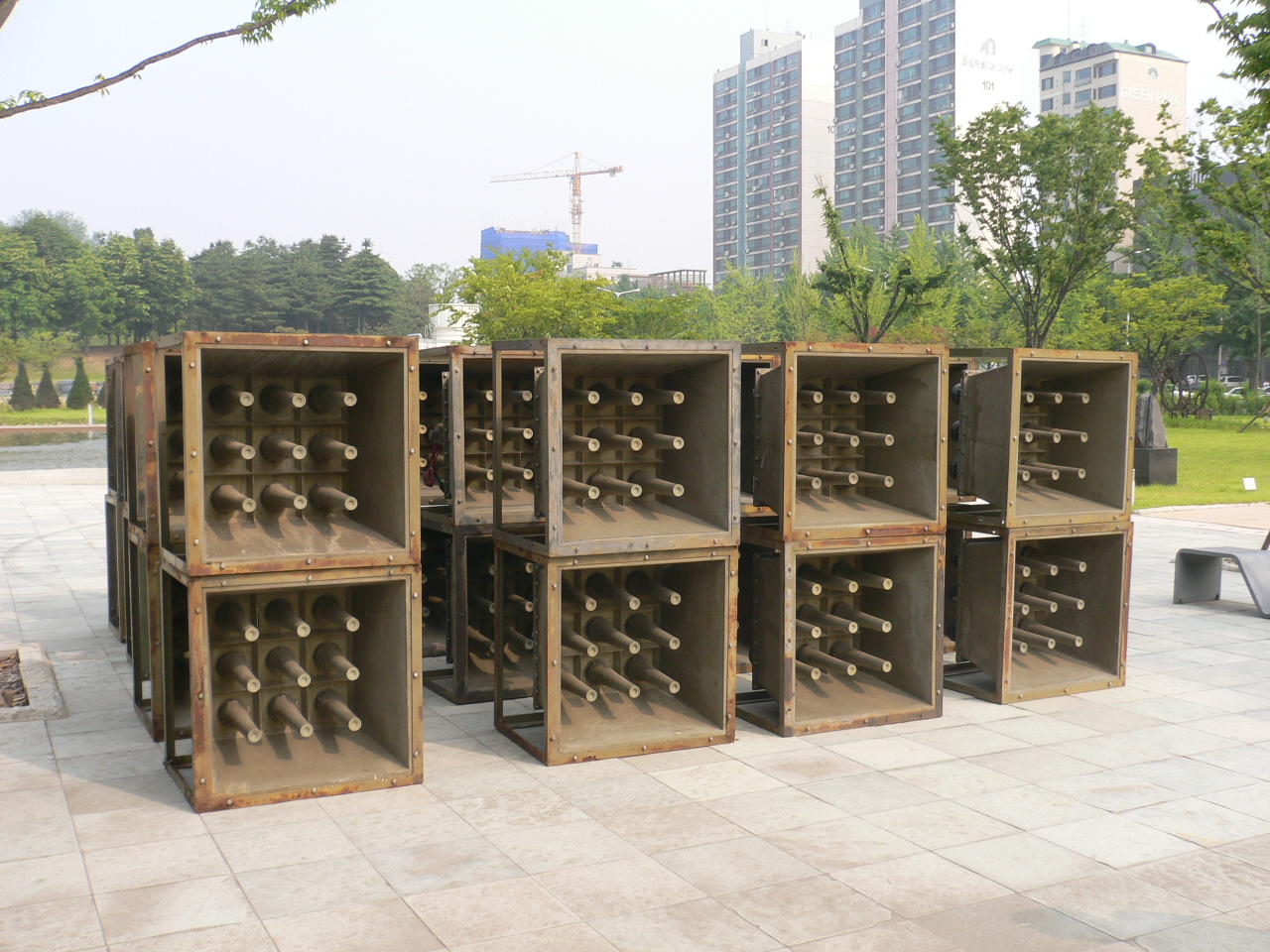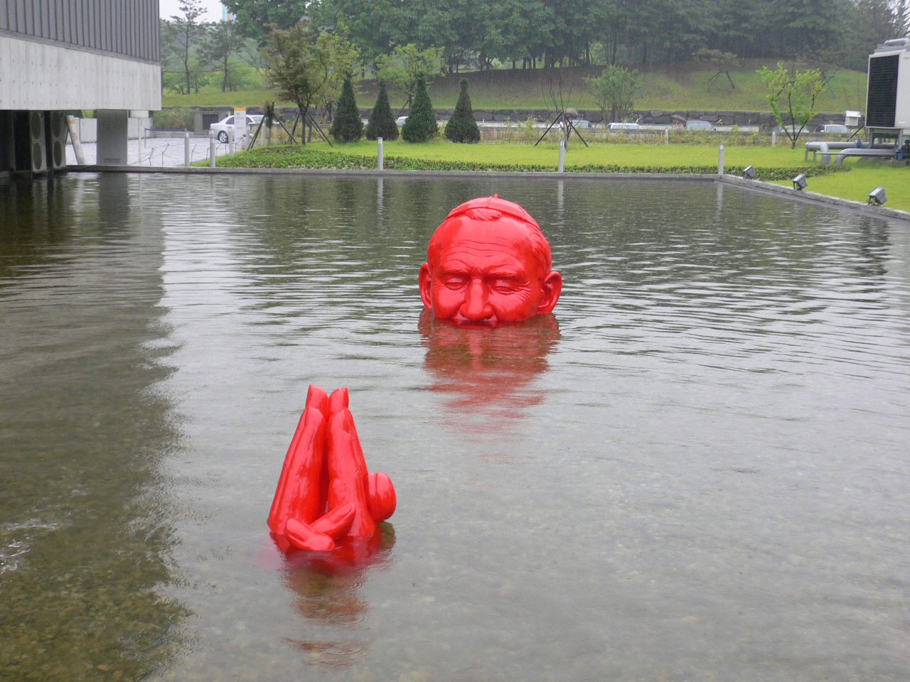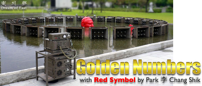 ExhibitionGolden Numbers is a work that was requested for the From the Fall of Berlin Wall to DMZ Exhibit and was put on display along with Red Symbol, a work created by South Korean artist, Park Lee Chang Shik. Red Symbol is a red art object in the shape of the head and hands of the late Pope John Paul II. Golden Numbers and Red Symbol was conceived as a collaborative work and put together under the title Dream of East. The place and period of the exhibition are is as follows:
