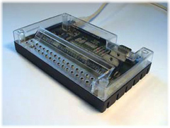 ロボット − USBインターフェース − Macintosh −Maxオブジェクト といったかんじです。まず必要になってくるのが、ロボットとコンピュータを繋ぐ為の、Boeig und Kallenbach社のUSBインターフェイス「SERVCE USB」。左の写真のものです。ちょっと透明なブロックみたいで、これまたかわいらしいです。ワークショップでは、これにfishertechnik社のロボットをつなぐのですが、それに限らず、その他のセンサーのコントロールにも使用することができます。 Max/MSP側では、講師の赤松氏が専用のMaxオブジェクトを開発しました!OS 9版だけでなく、OS X版も開発しているので、将来的にもまだまだ使えます(笑)。 お問い合わせ:dspss@iamas.ac.jp DSPオフサマースクールについては、コチラのサイトを御覧ください。 |