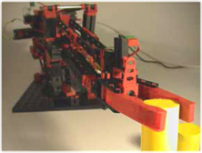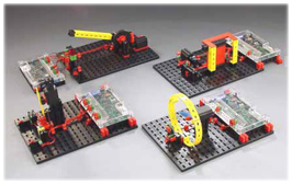 Max/MSPやJitterについては興味があるけど、ロボットを使ったワークショップって一体なにするの?なんてヒトも多いはず。また逆に、LEGO社のマインドストームやロボットには興味があるけど、Maxって何?というヒトも多いはず。そこで、このページでは、DSPオフサマースクールで受講者のみなさんが実際に使用するロボットくんたちとMax/MSPについて、簡単に御紹介したいと思います。 ■ニュース! サマースクールのプレゼンテーションでも面白そうなことをやってくれそうな、電子工作ライブユニット・ハッピースターインターフェース。彼等が、みなさんがワークショップで使用する、フィッシャーテクニック社のロボットを組み立て、制作風景を楽しくレポートしてくださいました。ワークショップの参考になると思いますので、是非御覧下さいませ! ハピスタのグル星野さんが産業用ロボット、ケン・コーダさんが自走ロボットを制作してくださいました。 http://www.happystar.com/fischer/ ハピスタのグル星野さんから、産業用ロボットの続報が届きました。(なんだかオモチャとは思えない...) http://www.happystar.com/fischer/making_robot_i/index6.html ハッピースターインターフェースのプロフィール ハッピースターインターフェースのプレゼンテーション(下の方にあります) ■fishertechnikのロボットキット ![]() ![]() fishertechnikのロボット入門キット(左)と産業用ロボット(右) 今回のワークショップに御協力いただいているのは、ドイツのfishertechnik(フィッシャーテクニック)社。ロボット・キットを発売して35年以上!という古い歴史をもち、fishertechnik社のキットは欧米では、教育用教材としてもとてもポピュラーだそうです。 ロボットの見た目は、「さすがドイツ!」と思わせるような、赤と黄色のブロックがハードで、カッコ良い感じです。レゴ社のブロックを連想させますが、それよりとても頑丈にできています。(私もレゴブロックでロボットを作ったことがあるのですが、実際に動かしてみると、折角作ったブロックがポロっと取れしまうことがあり、随分悲しい思いをしました....) ロボット・キットは数種類発売されていますが、今回のワークショップで使用するのは、「産業用ロボット」と「自走ロボット」の2種類です。「産業用ロボット」は、産業用のロボット(自動車工場の溶接ロボットを想像すると分りやすい)の動きをモデルとしています。ロボット・アームがついていて、ものを掴んで移動させる、というような動きをさせることもでき、なかなか面白くて、大きな動きをします(下のリンク集にムービがあります、必見!)。「自走ロボット」は、その名前から想像できるように、「自走する」のですが、付属のセンサーを組み合わせることにより、例えば、黒いラインの上を走らせる、光を追跡させる、障害物を回避する、など、プログラムによっては、複雑な動きをさせることができるでしょう。また、fishertechnikの日本の代理店「のもと」さんが制作した、二足歩行ロボットも何らかの形で発表していただく予定です(世界初公開)。 4日間に渡るワークショップでは、数人のグループでロボットを組み立て、そのロボットたちを、Max/MSP/Jitterからコントロールします。ただロボットをコントロールして遊ぶのもとても楽しいですが、Max/MSP/Jitterと連動させることにより、コンピュータの画面のなかだけでなく、プログラミングして物理的にモノ(=ロボット)が動いているのを見るのは、なかなか出来ない体験であり、ちょっと感動します。また、各自の作品に応用することももちろんできます。アイディア次第では、素敵なものができるでしょう。 ■ワークショップの協力会社へのリンク集 ■「fishertechnik」社のプロダクト紹介のページ http://http://www.fischertechnik.de/english/index.html (英語) ■「fishertechnik」社のプロダクト紹介のページ http://www.fischertechnik.de/produkte/produkte.html(但しドイツ語!) ■fishertechnikのロボットたちのムービー(QuickTimeMovie)です。とってもカワイイです、必見です! ワークショップで使用する産業用ロボットのムービー(1.6MB) 実験用ロボットのムービー(3.1MB) 空気圧ロボットのムービー(1.4MB) ■fishertechnik社の日本代理の「のもと」さんのページ http://www.kknomoto.co.jp/ ■ワークショップで使用する「自走ロボット」の紹介ページ http://www.kknomoto.co.jp/fischer/cp/cp03.htm ■ワークショップで使用する「産業用ロボット」の紹介ページ http://www.kknomoto.co.jp/fischer/cp/cp04.htm ■「Boeig und Kallenbach」のページ http://bkohg.com/(ドイツ語) http://bkohg.com/index_e.html(英語) Boeig und Kallenbach社は、fishertechnik社のロボットとコンピュータをつなぐUSBインターフェイスの開発を行っているドイツの会社。「ぼぉゅーにんぐ うんと かれんばっは」と読むそうです。 ■Max/MSP/Jitter