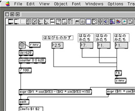 Maxはグラフィカルなオブジェクト指向プログラミング環境で、MSPは音響処理を、Jitterは映像処理をMaxに追加する拡張ソフトウェアです。上図のように、ある機能を持った箱を線で繋ぐことによりプログラミングを行うので、初心者の方にも解り易く、プログラミングをすることができます。Max/MSP/Jitterは、開発会社であるCycling'74社のウェブページからダウンロードすることができ、1ケ月間は無償で使用することができます。尚、Max/MSP/JitterはMacintosh上で動作しますが、先日Windows版が発表され、近い将来には、Windowsマシンにも対応すると思われます。 DSPオフサマースクール2003には、初心者向けのレクチャーが容易されているので、全くの初心者の方でも大丈夫です。また、2月から初心者のためのメールマガジン「DSPマガジン〜ビギナーズ・チュートリアル」を発行しますので、もし事前に勉強しておきたい方は、メールマガジンの購読をお勧めします。 ■Max/MSP/Jitter関連リンク ■Max/MSP/Jitter開発元の「Cycling'74」社のページ http://www.cycling74.com/index.html ■Max/MSPを解説した書籍「トランスMAXエクスプレス」のページ http://max.iamas.ac.jp/ ■「DSPマガジン〜ビギナーズ・チュートリアル」のページ DSPサマースクール実行委員会のお届けするメールマガジンの購読申し込みができます。 http://dspss.iamas.ac.jp/noi/magazine.html ■fishertechnikのロボットとMax/MSP/Jitterをつなぐ