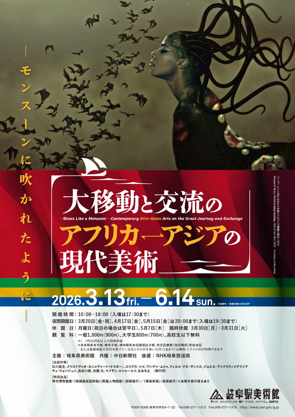 2026年3月13日から6月14日まで岐阜県美術館で企画展「-モンスーンに吹かれたように- 大移動と交流のアフリカ‐アジアの現代美術」が開催されます。この展覧会に卒業生でアーティストの長谷川愛さんが出品します。