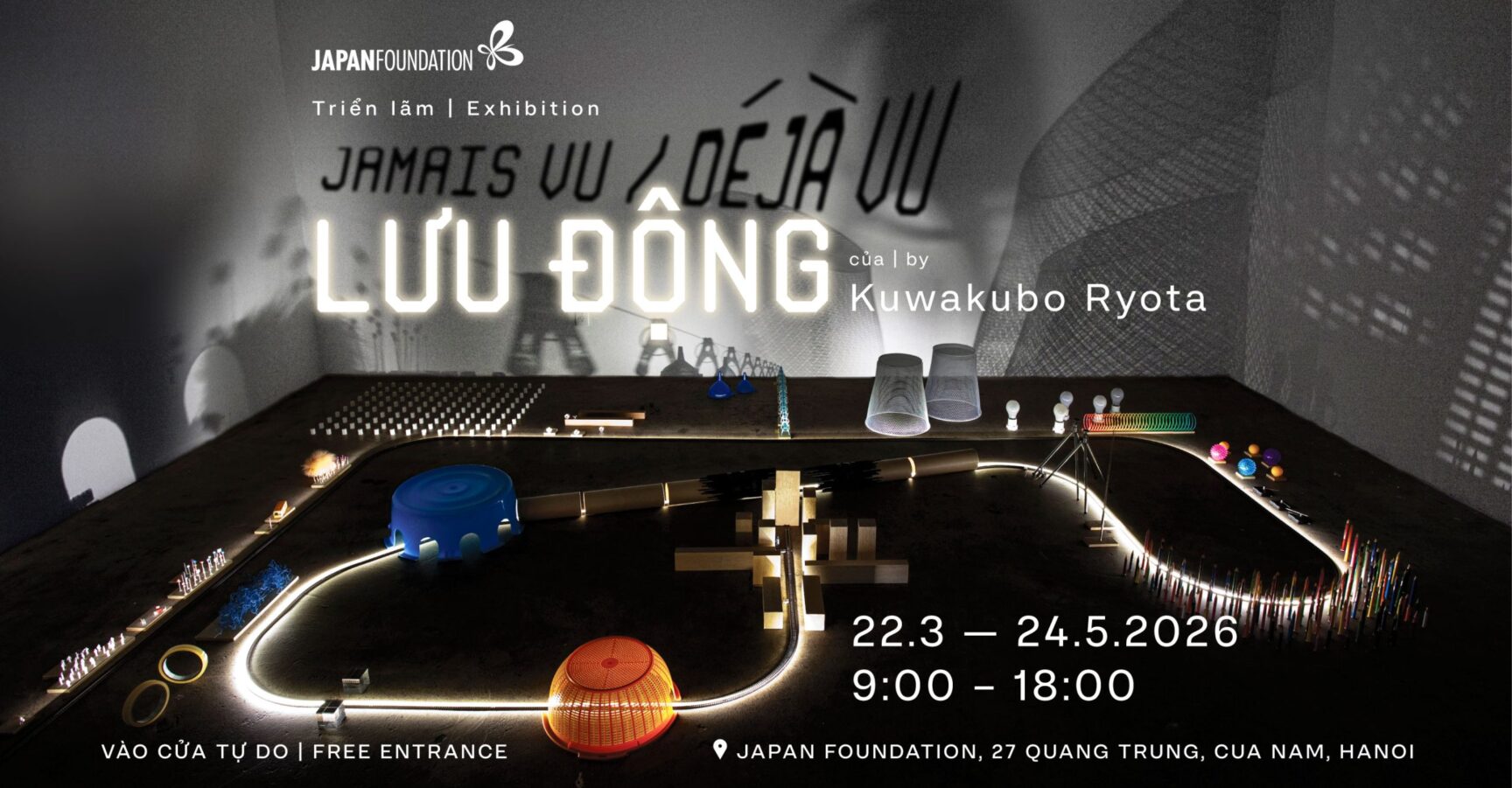 2026年3月22日から5月24日まで、ベトナム・ハノイの国際交流基金ベトナム日本文化交流センターでクワクボリョウタ教授の個展「Jamais vu / Déjà vu / Lưu động」が開催されます。展覧会では、クワクボ教授の新作が公開されます。