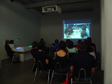 | 15:30 The NHK-BS "Digital Stadium" crew came to do a report on our exhibition. It was planned to coincide with a visit from teachers and students of the Ravensbourne College of Design and Communication. Ravensbourne College has an exchange program with IAMAS. |