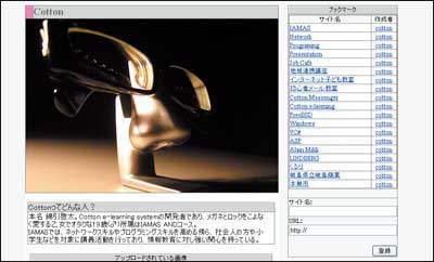 このCotton e-learning systemは、ユーザがシステム内の教育コンテンツを使って、教育を受けるだけで無く、問題や資料といった教育コンテンツを自身の手でアップロードできる仕組みを持つ。