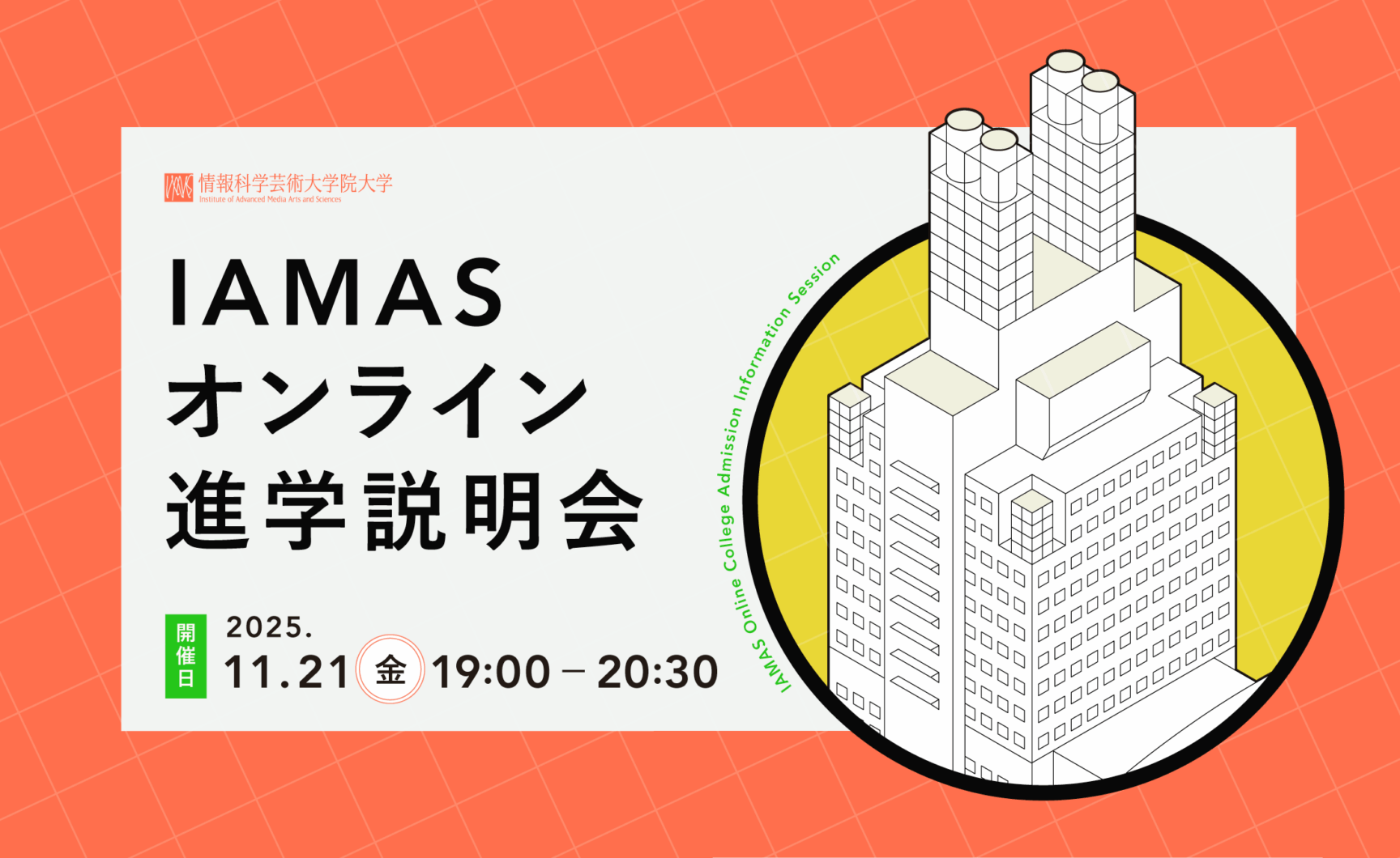 情報科学芸術大学院大学[IAMAS]は、博士前期課程(修士)と博士後期課程(博士)の概要と特色、および入学試験についての説明会を、2025年11月21日(金)19時よりZoomウェビナーで開催します。本学にご興味のある方は事前登録の上ご参加ください。次年度以降に受験を検討されている方の参加も大歓迎です。