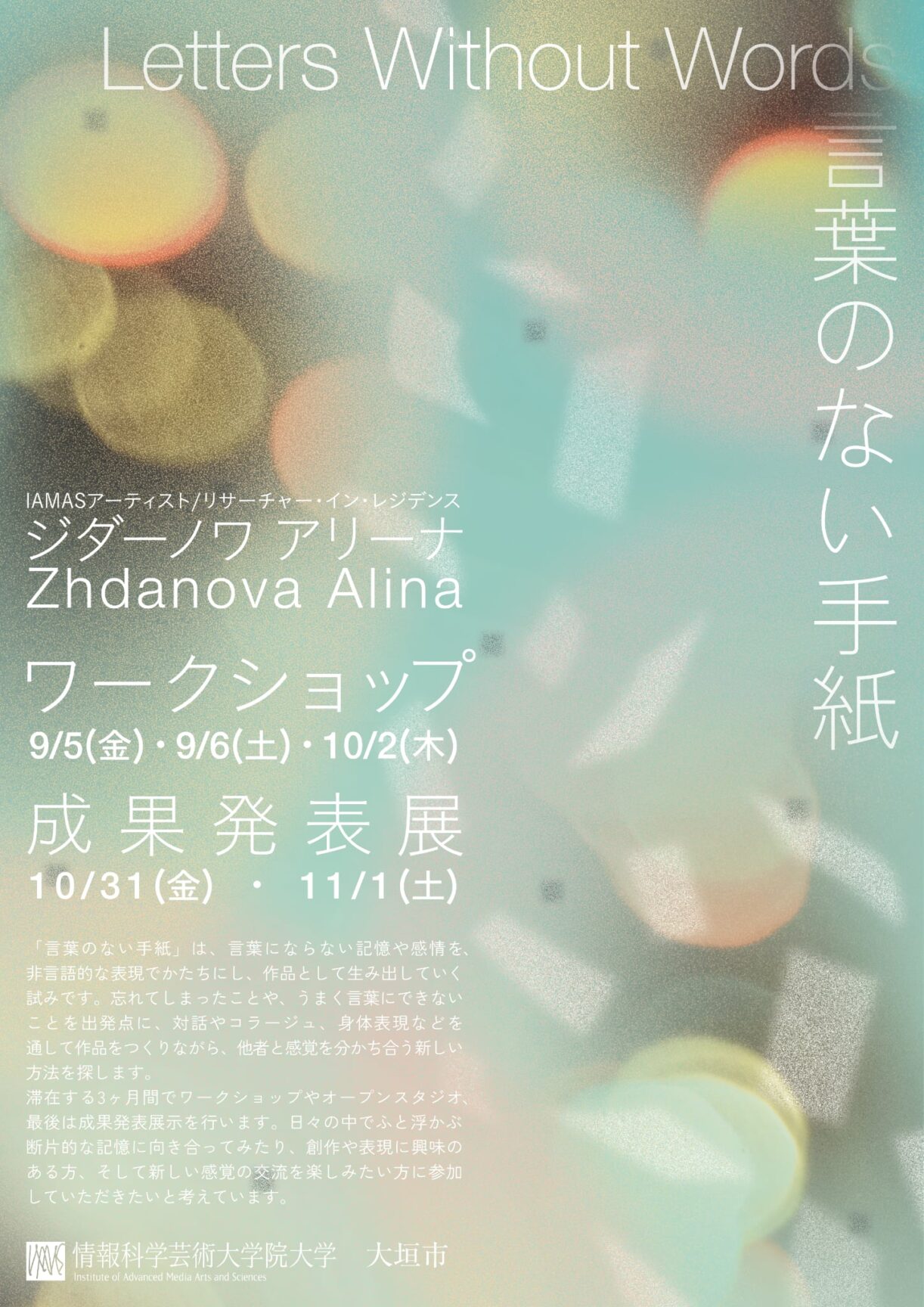 2025年10月31日(金)・11月1日(土)の2日間、ソフトピアジャパンセンター 12階 国際情場サロンを会場に、 アーティスト/リサーチャー・イン・レジデンス 成果発表展を開催します。情報科学芸術大学院大学(以下 IAMAS)では、アーティスト/リサーチャー・イン・レジデンス事業として、2025年8月から11月までの3か月間、映像作家・キュレーターのジダーノワ・アリーナさんが滞在制作を行いました。今回のレジデンス期間で行ったリサーチやワークショップをもとに制作した作品の展示するほか、会期中にオープンディスカッションも予定しています。