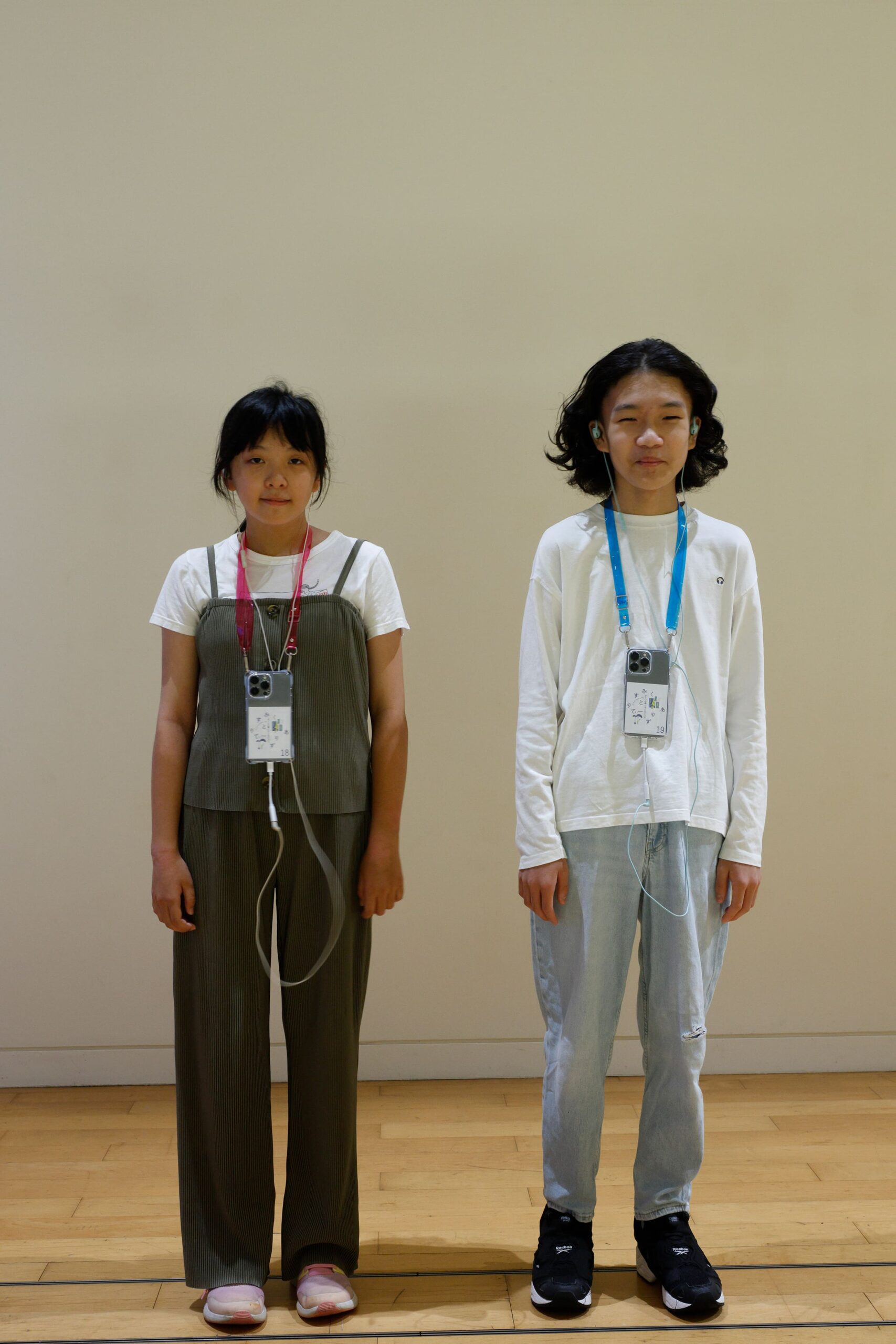 《Reasonance》は「“人”を音源とするマルチプレイ型の音声 MR※6作品であり、音に質量や所有感を与えることを目指した体験型のサウンドインスタレーション」※7と説明される。まず鑑賞者は、専用アプリをインストールしたスマートフォンを首から下げ、会場各所に置かれた合計3つのスピーカーのうち、音が出ているものに近づくよう促される。すると、そのスピーカーから出ていた音がスマートフォンのイヤホンから聴こえてくるようになる。仮にこの音をAとすると、取得後に鑑賞者自身のスマートフォンからAを聴くことができる代わりに、元のスピーカーからはAは聴こえなくなる。つまり鑑賞者は、音声記録媒体やオーディオ機器のように物理的な支持体の媒介なしに、通常考えられる「音を持っている感覚」とは異なる方法によって、Aという音を所有するかのような体験をする。