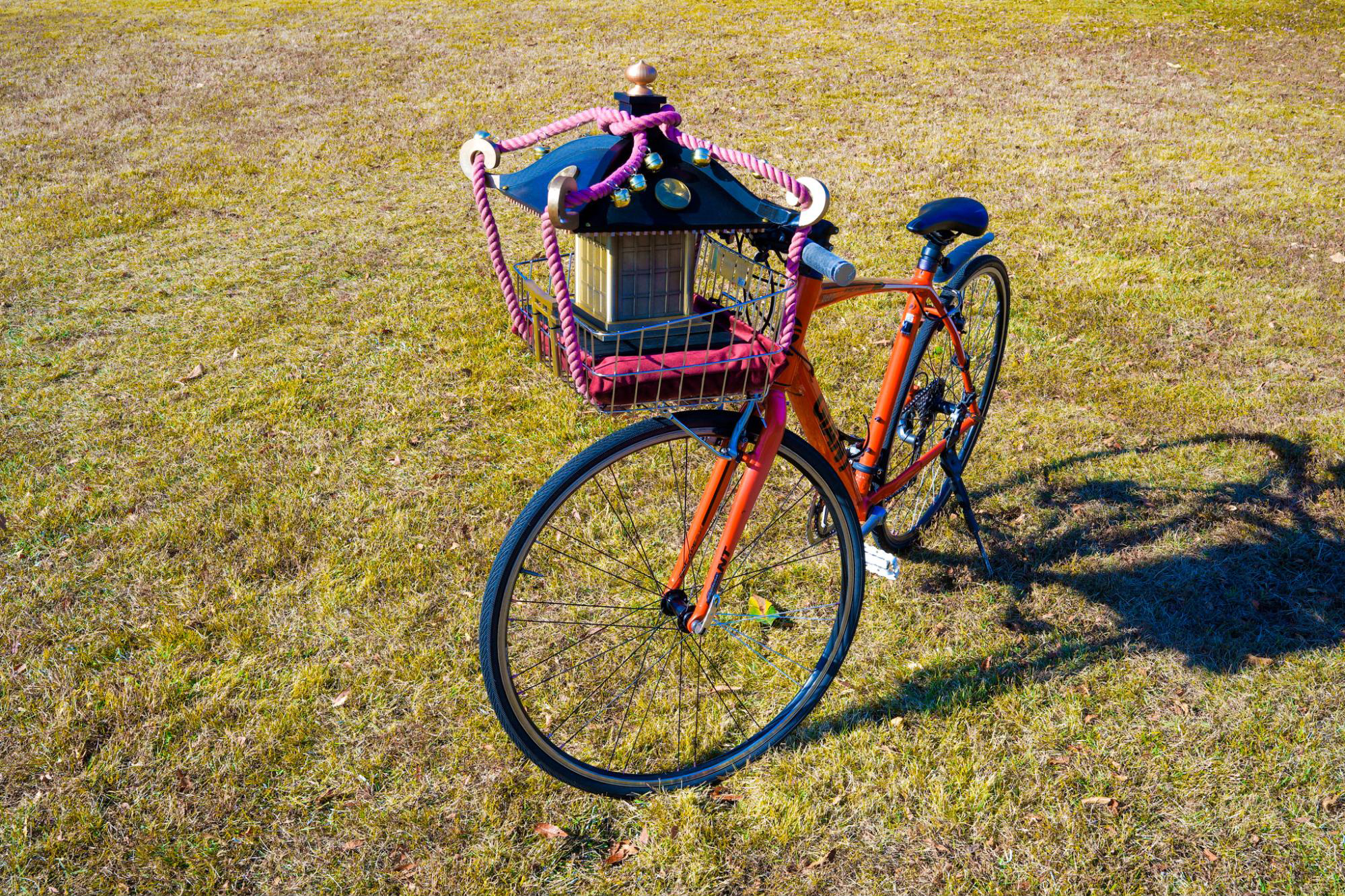 神輿を乗せてペダルを漕ぐことは極めて爽快で、走り出した途端に自分自身が「祭り」そのものになったような感覚が押し寄せる。紫色の紐に括りつけられた鈴がしゃんしゃんと高く鳴って軽い振動が胸の奥まで響く。気分は自然と高揚していく。それは晴れた日に自転車に乗って走り回る楽しみの極みにある、とてつもなく生を肯定する営為のようにも思えた。